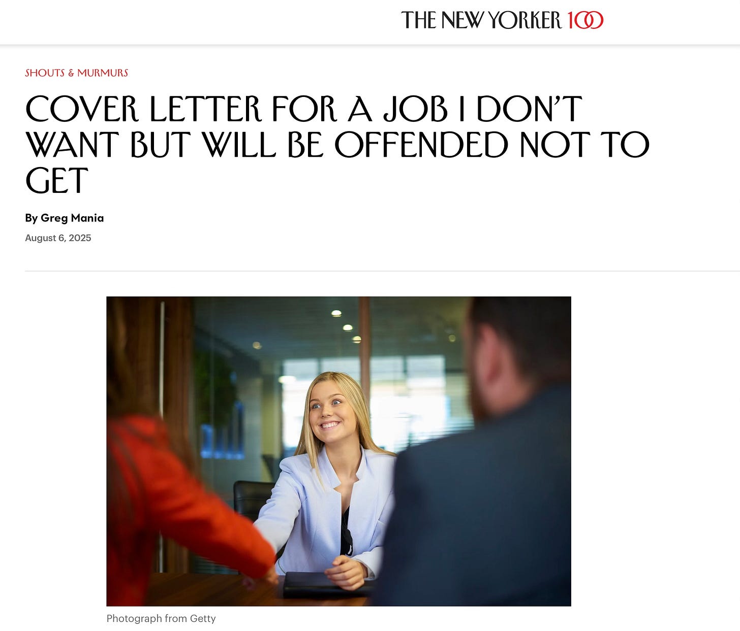 Next, I wrote a cover letter that didn’t land me a job, but it did land in The New Yorker!